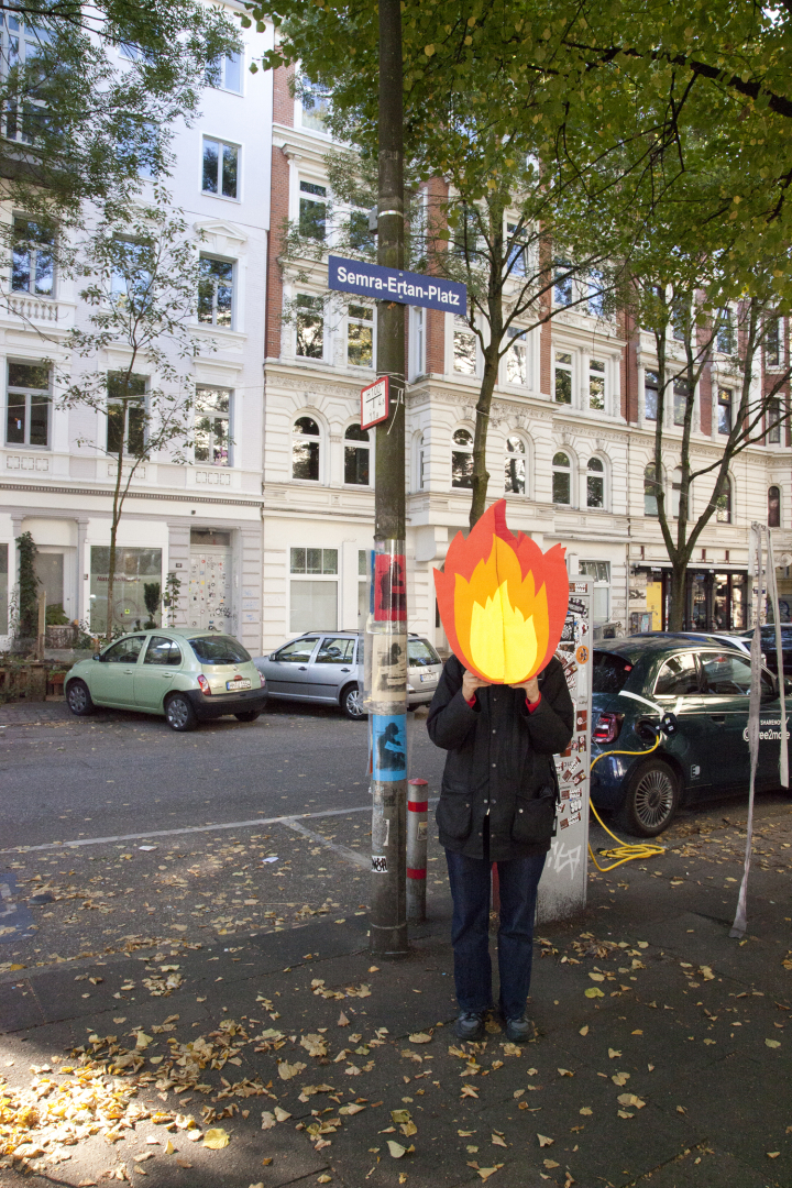 Vera Drebusch entwickelt in enger Kooperation mit dem Projektteam der Ausstellung sowie den Schüler:innen des Struensee-Gymnasiums eine Route durch Altona. Dabei begleitet sie deren Performances und installative Interventionen an ausgewählten Orten. Arbeitsorte sind sowohl das Struensee-Gymnasium als auch der öffentliche Raum im Bezirk Altona.