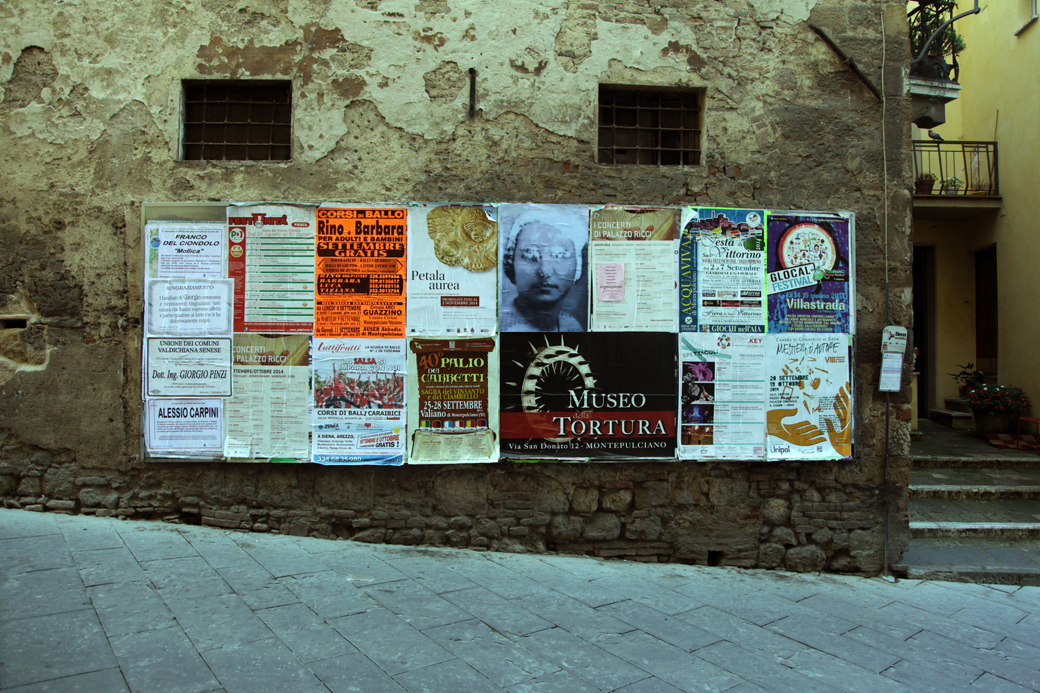 Plakatiert an sechs verschiedenen Orten in Montepulciano, Italien