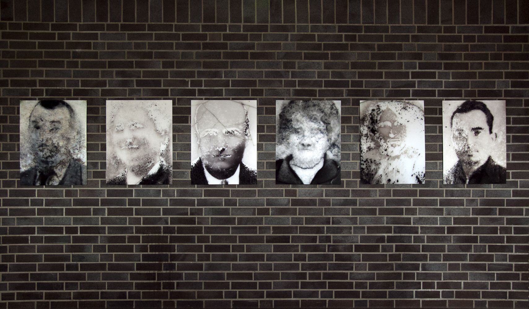 “Zypressen säumen die Wege des Friedhofs in Montepulciano. Von den dortigen Gräbern stammen die fotografierten Portraits. Die Gesichter der Verstorbenen haben sich im Laufe der Zeit durch natürliche Witterungseinflüsse verändert. Ihr Bild ist verschwommen, der einst dem Betrachter zugewandte Blick erloschen, da der ehemals lebhafte, dunkle Punkt der Iris in konturloses Weiß transformiert wurde. Die Fotografien, die auf den Grabsteinen den Anblick eines Verstorbenen in Erinnerung rufen, ihn im Moment des Lebens halten sollten, haben selbst einen Prozess der Zersetzung durchlebt. Ihre Reproduktion auf Plakaten ist ein weiterer Schritt der Fixierung, der Versuch, Vergangenes zu erhalten, doch ist das Bild schon vom Verfall gezeichnet, bleibt lückenhaft. Die Plakate repräsentieren somit eine weitere Etappe im Fluss der Zeit, der Dinge, Menschen und Erinnerungen transformiert.”