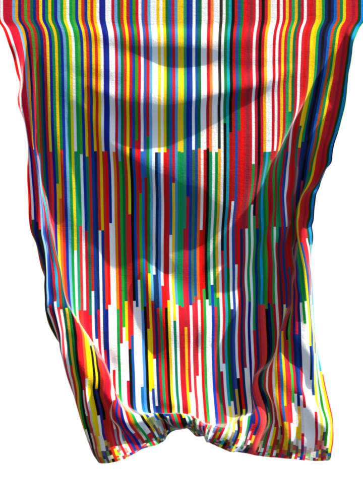 Die Performance „Flagge“ beschäftigt sich mit den Formaten der 194 von den Vereinten Nationen anerkannten Nationalflaggen. In einer Lecture Performance werden ihre Seitenverhältnisse vorgestellt. Die Fahne selbst ist eine Abstraktion aller Nationalflaggen, reduziert auf Farbbalken und vereint sie symbolisch in einem Motiv.