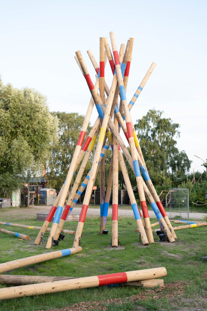 Die 37 Holzstäbe haben eine Länge von 7 m und einen Durchmesser von 16 cm.