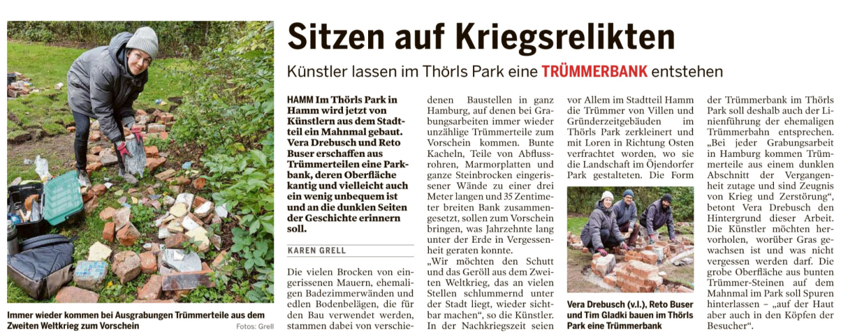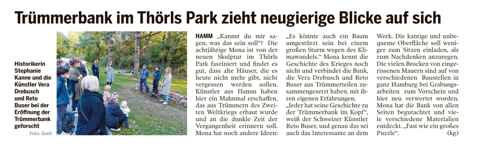 Trümmer-Bank | Thörls Park Hamburg Hamm | Installation | 2022-28