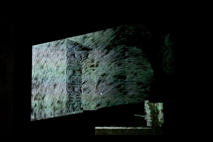 For this work various bodies of water were recorded using phone cameras of varying video quality. The resulting videos show the element of water in diverse geographic contexts (as a river, canal, sea, ice floe, spring, and fountain) and in different weather conditions. In a loop the movements dissolve into abstraction and form a regular, minimally changing, and ultimately recurring pattern. The interplay of the architecture and the video projections transform the static space into a flowing environment.