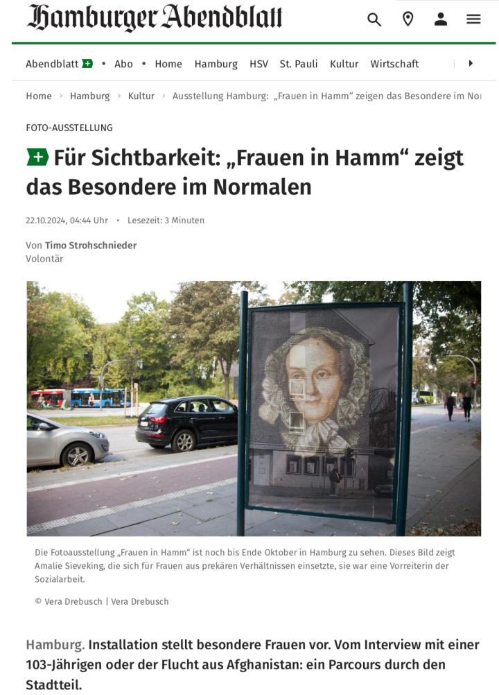 Hamburg. Installation stellt besondere Frauen vor. Vom Interview mit einer 103-Jährigen oder der Flucht aus Afghanistan: ein Parcours durch den Stadtteil.