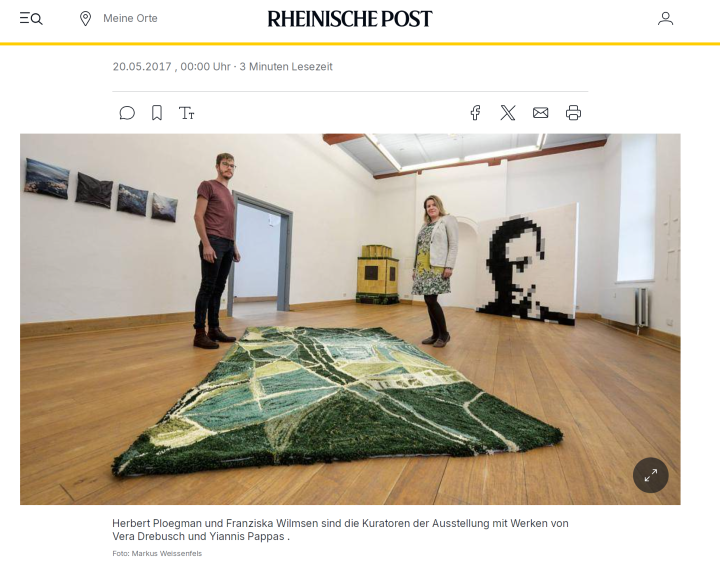 In ihren Arbeiten bringt Vera Drebusch Zeitgeschichte und persönliche Biografie zusammen. (…) Postkarten, Bücher, Soundinstallation und ein Wandteppich: In den Arbeiten von Vera Drebusch treffen politische, gesellschaftliche und soziale Themen auf ihre persönliche Biografie – dargestellt in verschiedensten Medien. Die neue Ausstellung der Künstlerin in der Galerie Januar trägt den Titel „Im Falle des Fallens“.