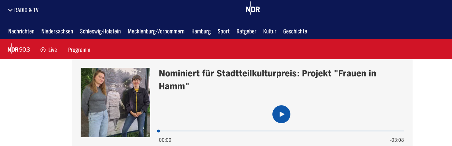 “NDR 90,3 – Kulturjournal | Nominiert für Stadtteilkulturpreis: Projekt “Frauen in Hamm”